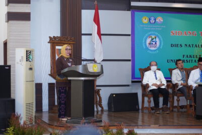 [unsoed.ac.id, Kam, 25/09/25] Dalam Sidang Senat Terbuka Dies Natalis ke-24 Fakultas Kedokteran Universitas Jenderal Soedirman (FK Unsoed) yang diselenggarakan di Auditorium Fakultas Kedokteran 25 September 2025, Menteri Pemberdayaan Perempuan dan Perlindungan Anak (PPPA), Arifatul Choiri Fauzi, menyerukan kolaborasi seluruh elemen bangsa untuk mewujudkan perlindungan optimal bagi perempuan dan anak menuju Indonesia Emas 2045.