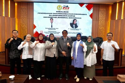 [unsoed.ac.id, Sen, 29/09/25] Universitas Jenderal Soedirman (Unsoed) berkomitmen mewujudkan lingkungan akademik yang aman, sehat, dan bebas kekerasan. Hal ini diwujudkan melalui kegiatan Sosialisasi Pencegahan dan Penanganan Kekerasan di Lingkungan Kampus yang dilaksanakan pada Senin, 29 September 2025 bertempat di Graha Adhyaksa Lantai 3 Fakultas Hukum Unsoed.