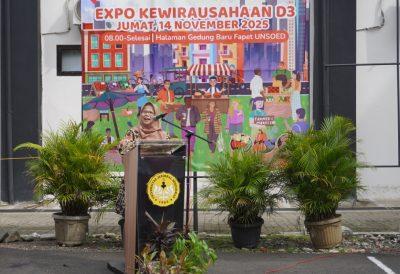 [unsoed.ac.id, Sen, 17/11/25] Fakultas Peternakan Universitas Jenderal Soedirman (Fapet Unsoed) kembali menggelar Expo Kewirausahaan Program D3 tahun 2025 sebagai puncak kegiatan praktikum mata kuliah Kewirausahaan. Kegiatan yang menampilkan beragam inovasi produk pangan berbasis peternakan ini dibuka secara resmi oleh Dekan Fapet Unsoed, Ir. Novie Andri Setianto, S.Pt., M.Sc., Ph.D., IPU, ASEAN Eng.