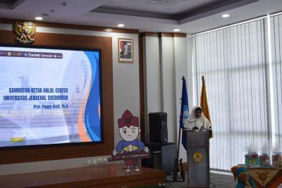 Selanjutnya, Prof. Poppy Arsil, S.TP., M.T., Ph.D., Ketua Halal Center Unsoed, memaparkan capaian program mulai dari edukasi, riset, pendampingan UMKM, hingga literasi halal yang menyasar berbagai kelompok usia. Komitmen penguatan ekosistem halal juga ditegaskan oleh Prof. Dr. Ir. Elly Tugiyanti, M.P., Kepala LPPM Unsoed, yang menyampaikan dukungan penuh lembaganya terhadap keberlanjutan program ini.