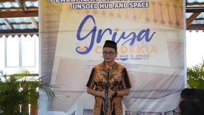 Sementara itu, Kepala Badan Pengelola Usaha (BPU) Unsoed, Dr. Adi Indrayanto, M.Sc., menyampaikan bahwa Griya Cendekia diharapkan menjadi pusat pengembangan potensi mahasiswa, khususnya dalam bidang kewirausahaan dan kolaborasi industri.