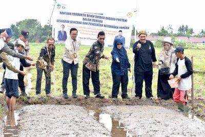 Kegiatan kemudian dilanjutkan dengan penanaman perdana benih Inpago Unsoed Protani oleh Gapoktan Harapan Mulya di lahan persawahan Desa Sokaraja Tengah.