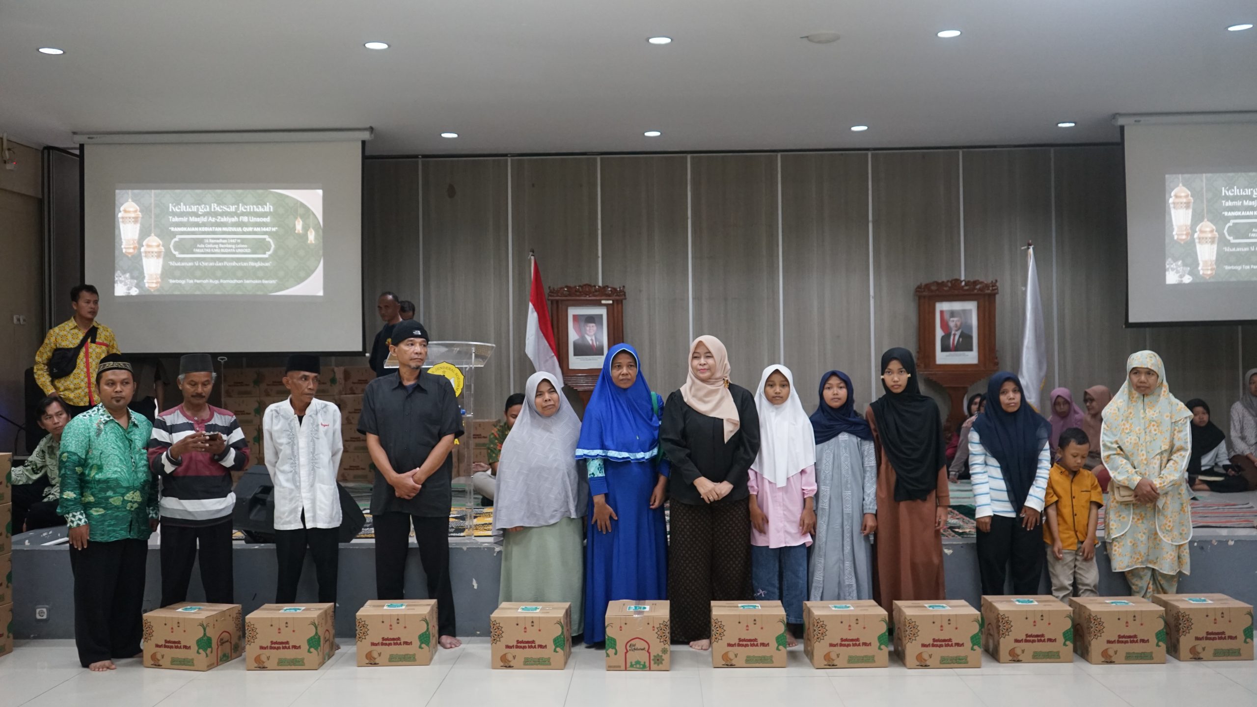 [unsoed.ac.id, Min, 8/3/26] Fakultas Ilmu Budaya (FIB) Universitas Jenderal Soedirman (Unsoed) menggelar rangkaian kegiatan Bertabur Berkah Ramadan yang meliputi bazar sembako murah, pembagian sedekah pangan, pembagian bingkisan, khataman Al-Qur’an, serta buka puasa bersama sivitas akademika. Rangkaian kegiatan amaliah Ramadan pada tanggal 5-6 Maret 2026, diselenggarakan oleh Takmir Masjid Az Zakiyah FIB Unsoed bekerja sama dengan panitia yang terdiri dari dosen, tenaga kependidikan, serta mahasiswa Unit Kegiatan Islam (UKI) FIB Unsoed.