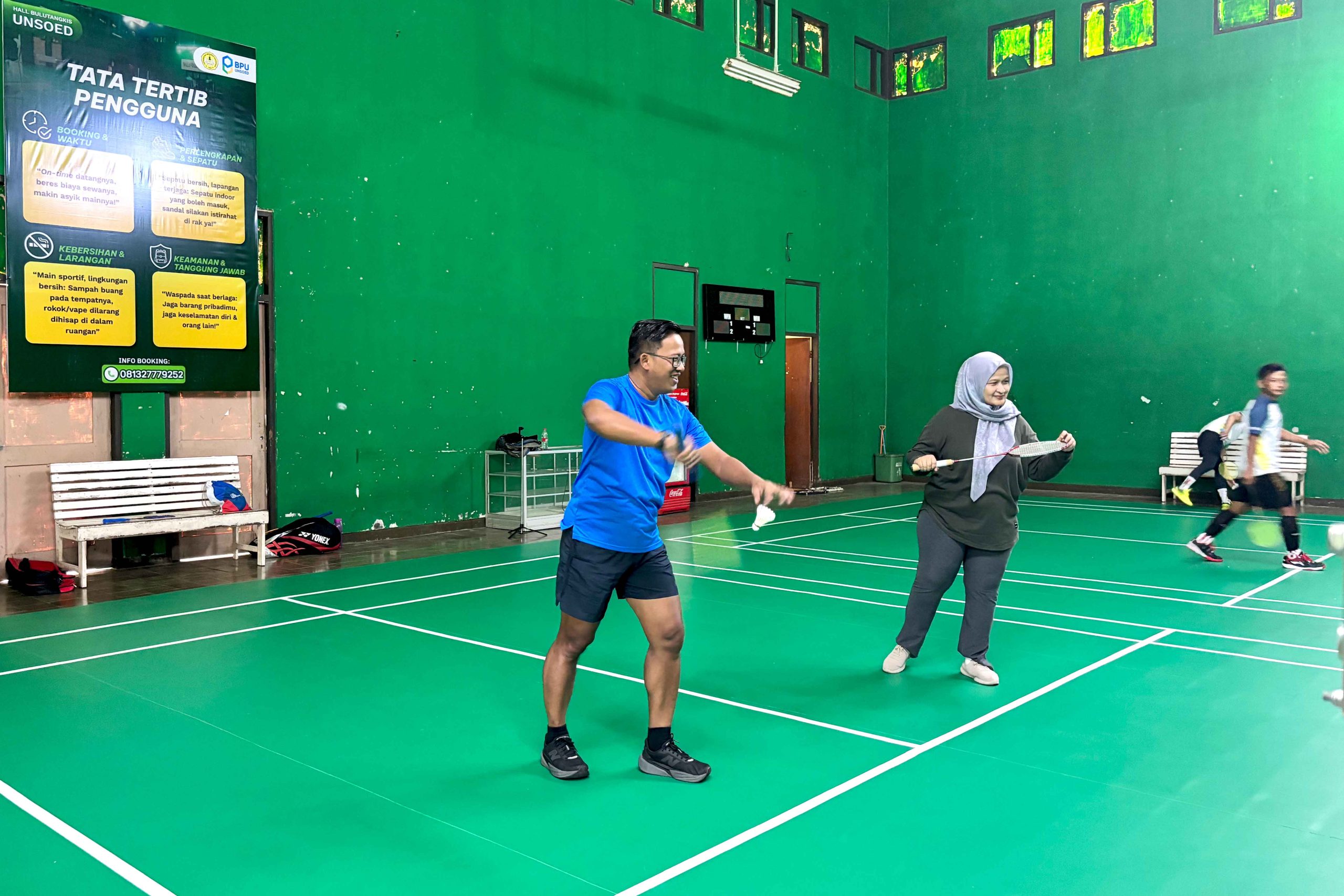 [unsoed.ac.id, Jum, 23/01/26] GOR Badminton Universitas Jenderal Soedirman (Unsoed) kembali dibuka untuk umum setelah selesai menjalani proses renovasi dan peningkatan fasilitas. Pembukaan kembali GOR tersebut ditandai dengan pelaksanaan serve pertama oleh Kepala Badan Pengelola Usaha (BPU) Unsoed, Dr. Adi Indrayanto, S.E., M.Sc., yang kemudian dilanjutkan oleh Sekretaris BPU, Dr. Ike Sitoresmi.