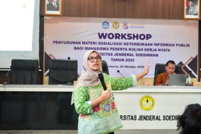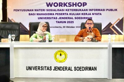 [unsoed.ac.id, Kam, 30/10/25] Universitas Jenderal Soedirman (Unsoed) menyelenggarakan Workshop Penyusunan Materi Sosialisasi Keterbukaan Informasi Publik bagi mahasiswa peserta Kuliah Kerja Nyata (KKN) periode Januari–Februari 2026 yang dilaksanakan pada hari Kamis, 30 Oktober 2025 di Rektorat Unsoed. Kegiatan ini menjadi bagian dari pembekalan strategis bagi mahasiswa sebelum terjun ke masyarakat di desa-desa lokasi KKN.