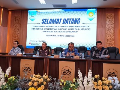 Unsoed, 10 April 2026 – Fakultas Hukum Universitas Jenderal Soedirman (FH Unsoed) mempertegas komitmennya dalam mengawal transformasi hukum nasional dengan menyelenggarakan workshop strategis bersama Direktorat Pembangunan Hukum, HAM, Imigrasi, dan Pemasyarakatan Kementerian PPN/Bappenas. Kegiatan ini bertajuk “Penguatan Alternatif Pemidanaan untuk Mendorong Implementasi KUHP dan KUHAP Baru: Kesiapan dan Model Kolaborasi di Wilayah” di Gedung Justitia 6, Fakultas Hukum Unsoed (9/4).
