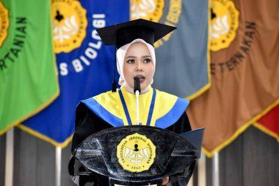 Puput Oktaviana, selaku perwakilan wisudawan, turut menyampaikan ungkapan syukur dan apresiasi dalam kesempatan tersebut. Ia menggambarkan bahwa setiap toga yang dikenakan hari itu menyimpan kisah perjuangan panjang.